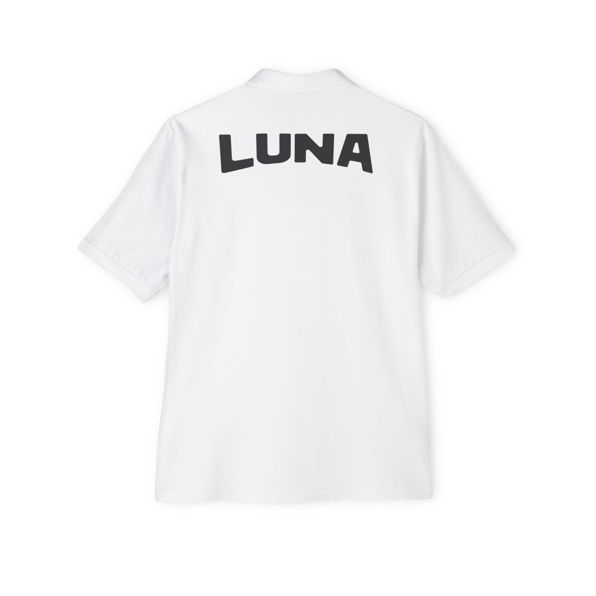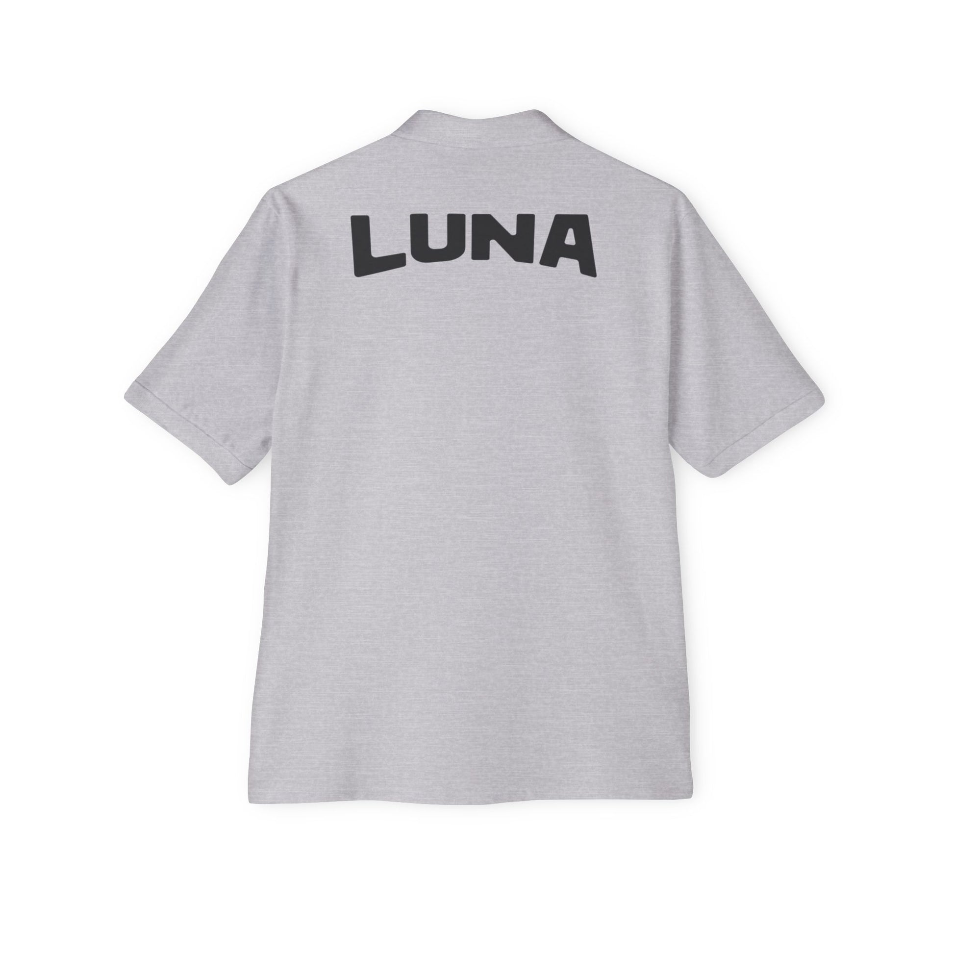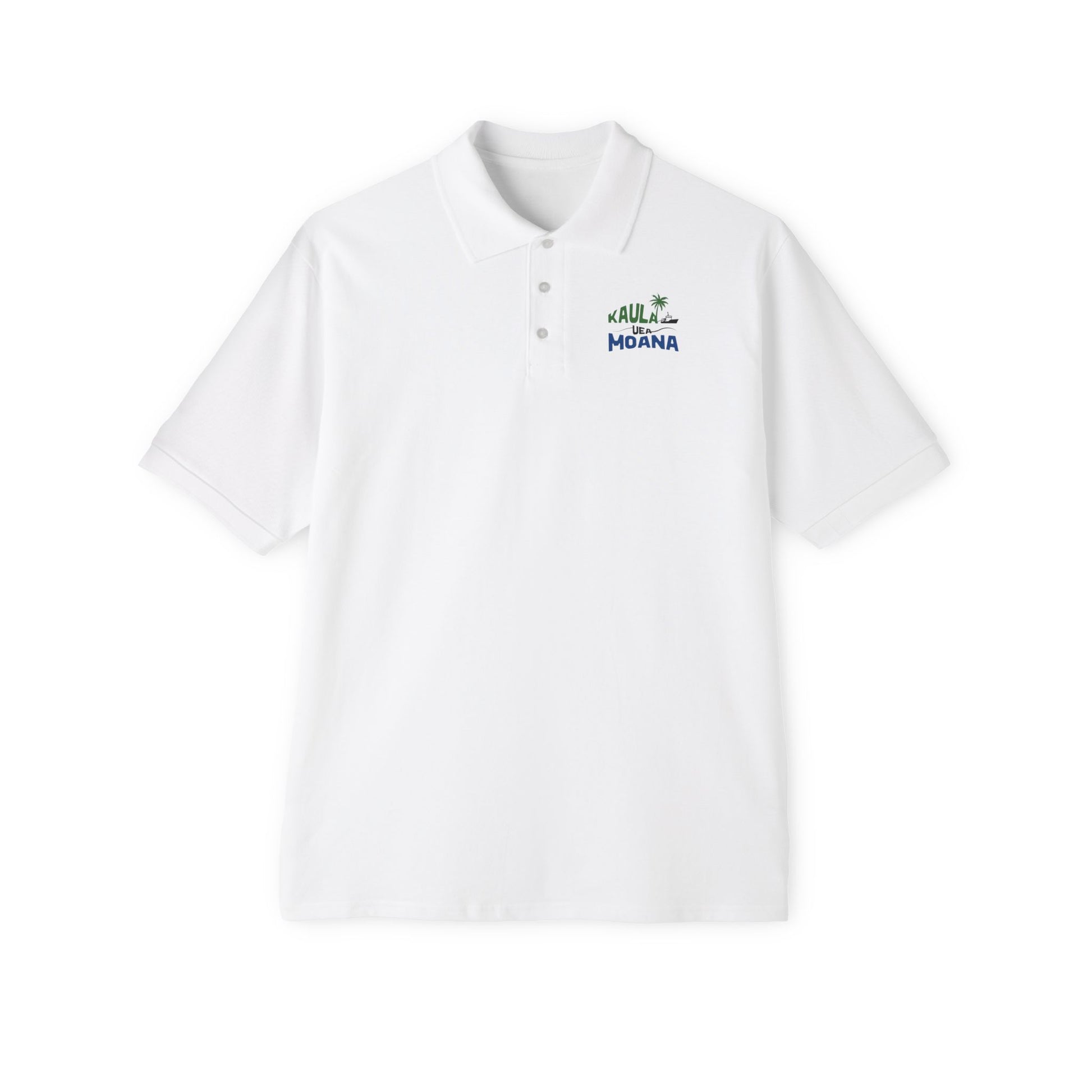 Kaula Uea Moana Luna Men's Cotton Polo Shirt featuring the Kaula Uea Moana logo on the front and LUNA on the back.